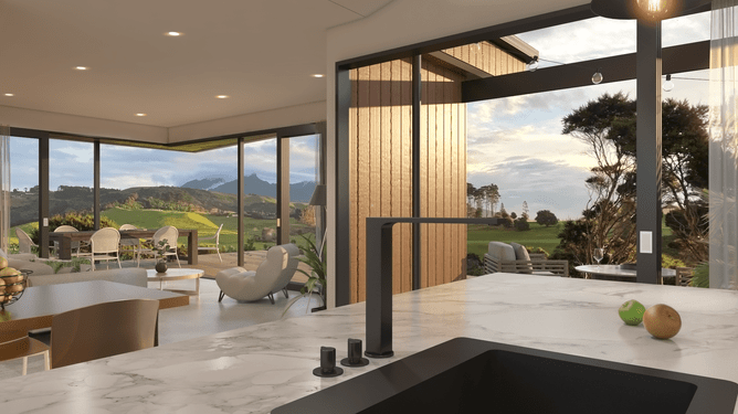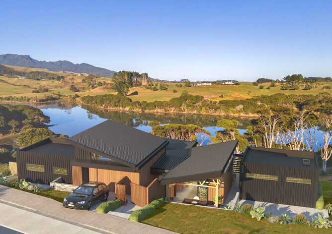 He was introduced to Nixon Homes via his Architect Paul, he recalls meeting Cam at the Nixon Homes show home and hitting it off straight away. Cam, Mike and the Nixon Homes team are now onsite about to kick start construction on this beautifully designed architectural home perched on a hillside in Rangitahi Peninsula overlooking Mt Karioi and the Raglan Estuary.