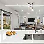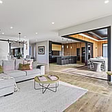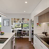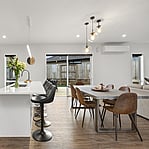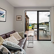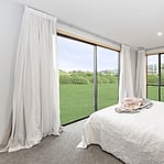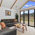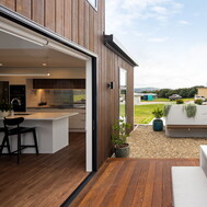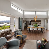 This home was designed as a low-maintenance, high-lifestyle retreat for retirement. With a compact footprint, it delivers thoughtful architecture, guest-ready spaces, and easy indoor-outdoor flow. Full-height glazing fills the open-plan living area with light, while neutral tones and timber accents create a calm, modern feel.