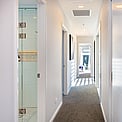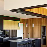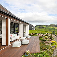 The front exterior provides a subtle glimpse of the tranquil vantage ahead, through raking windows and long external corridors leading directly through the house to the deck. The front entrance dips down, inviting you toward the view before revealing itself in mass from inside the doorway.