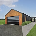 The kitchen is efficient yet social, and a sliding door reveals a quiet office. The main bedroom opens to the deck and features a tiled ensuite, while two additional bedrooms share a generous bathroom. Clad in vertical timber and pale plaster, with clean lines and landscaped borders, this is a modern rural retreat built to last.